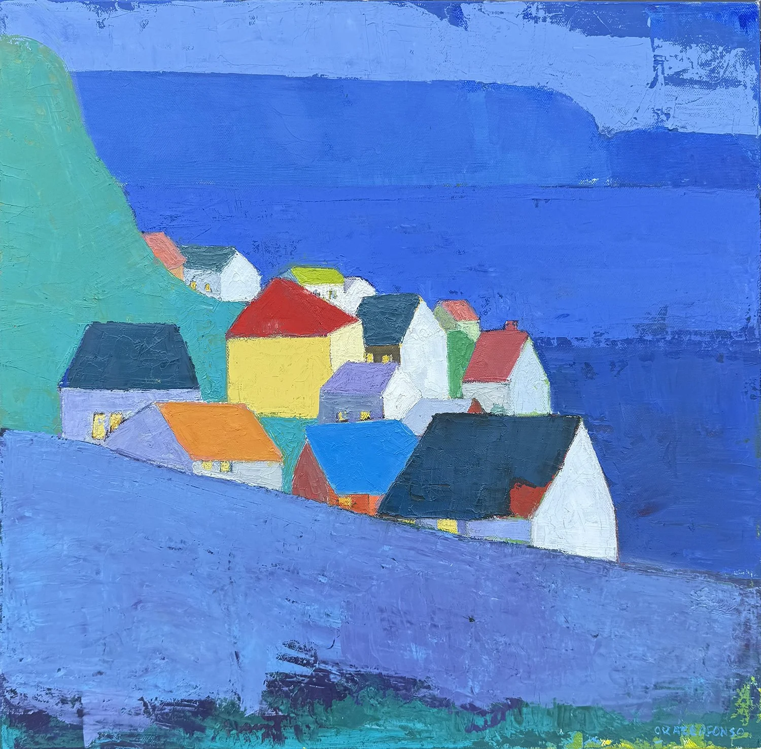 580-005 | Grace Afonso, "As the Night Falls” oil on canvas, 20"x20". SOLD