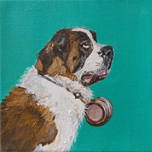 487-006 | C Adele Gillis, Wolverhuahua, acrylic on canvas, 6"x6". SOLD