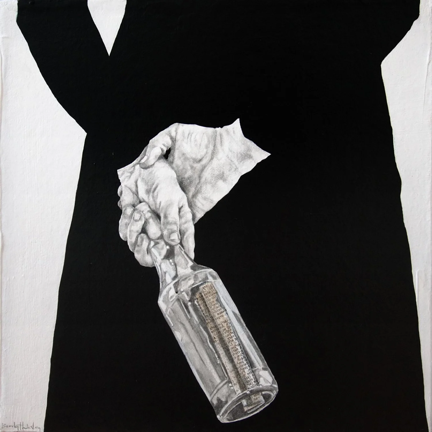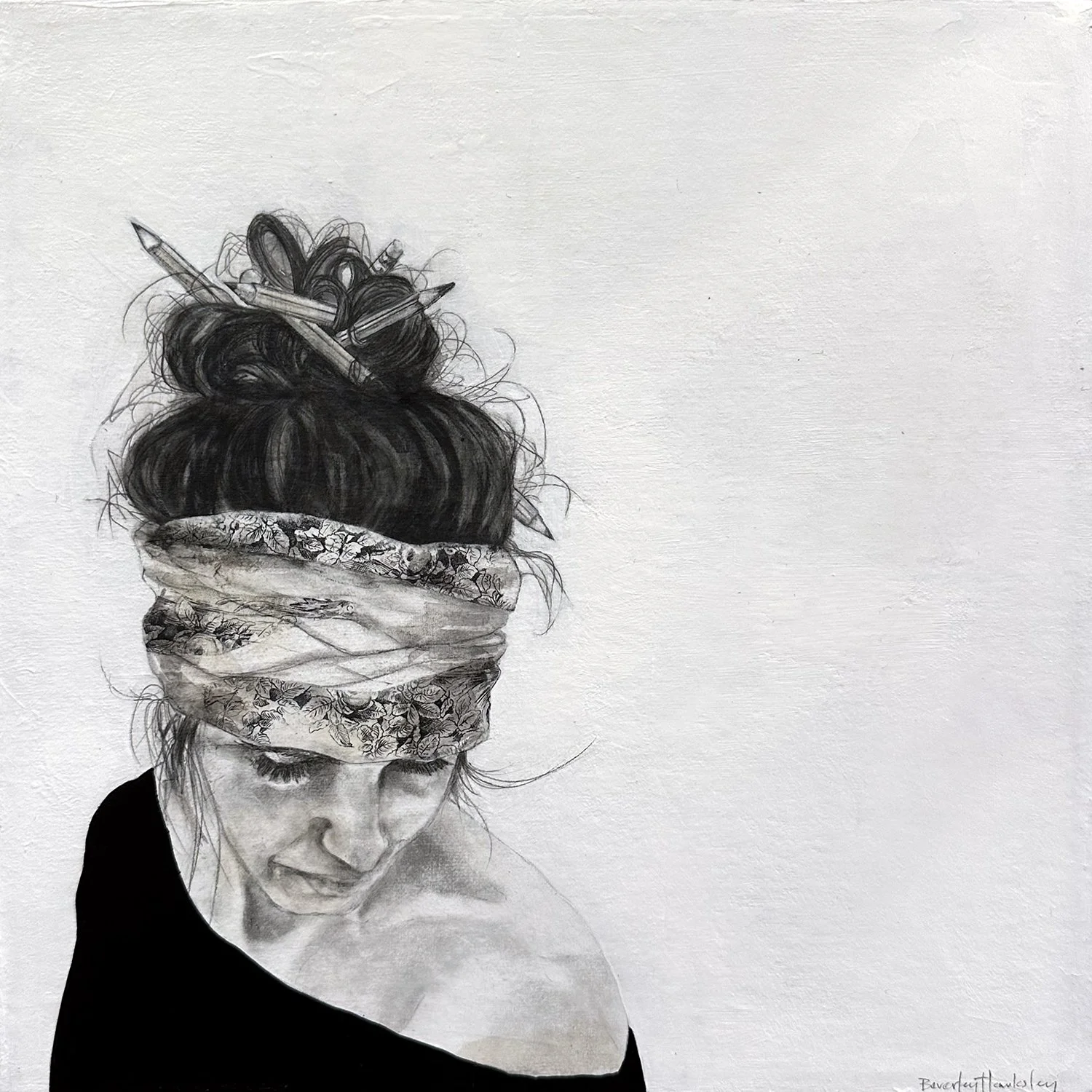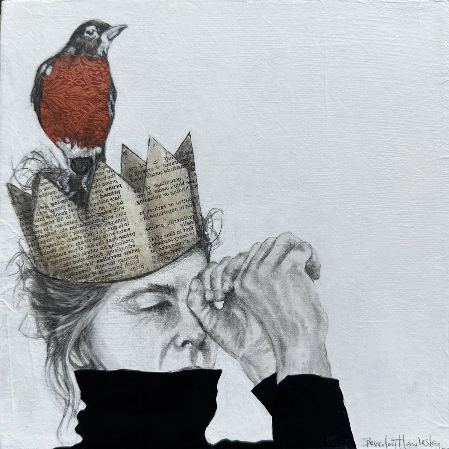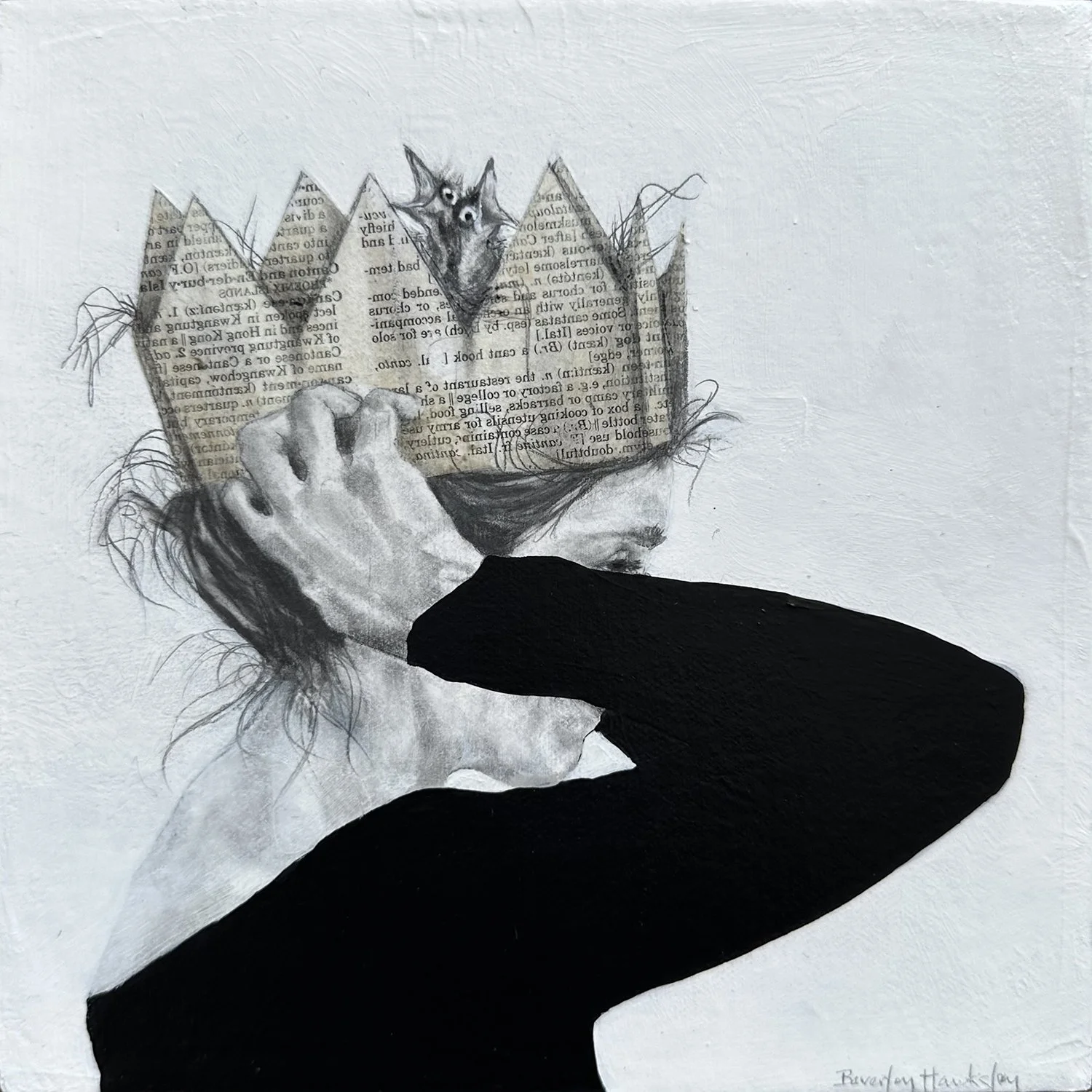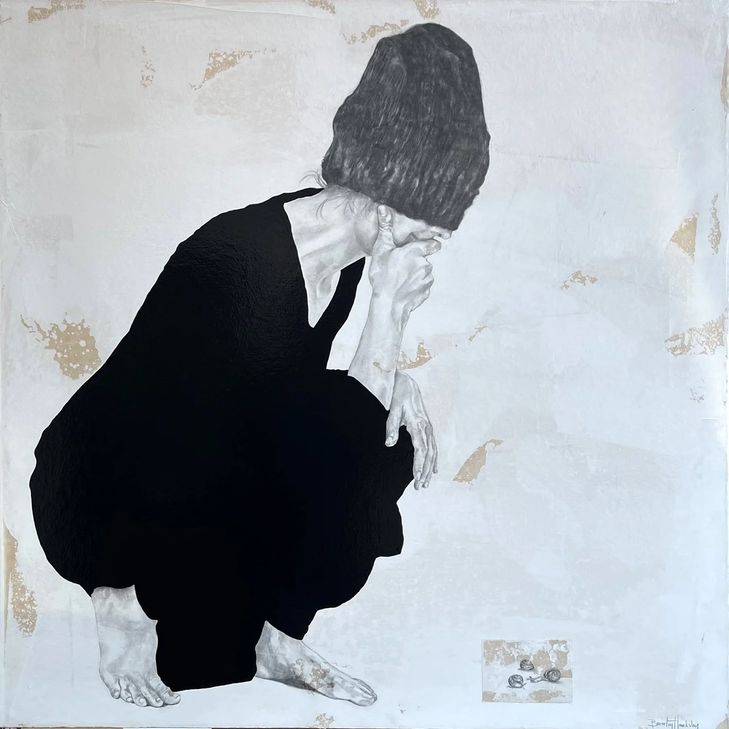 547-099 | Beverley Hawksley, Sshh, mixed media on canvas, 16”x16.” SOLD
