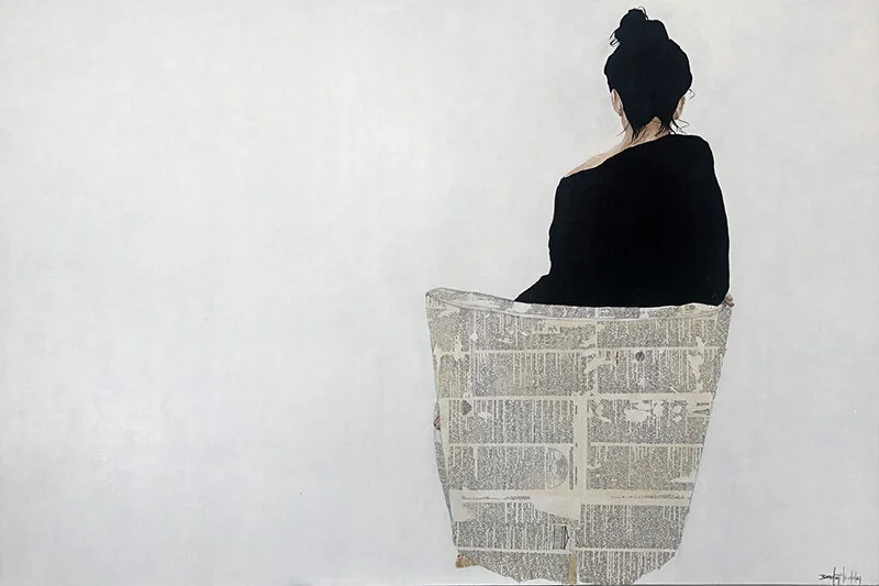 547-034 | Beverley Hawksley, "Studying Inner Tapestries", mixed media on canvas, 40"x30". SOLD