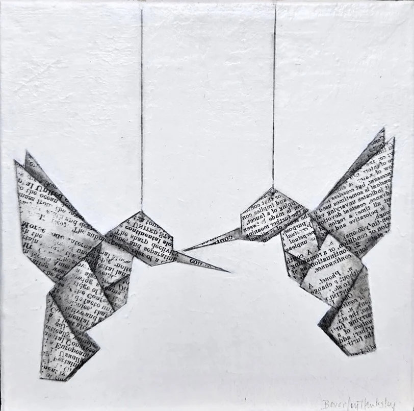 547-057 | Beverley Hawksley, Celebrating Fledglings, mixed media on canvas, 16”x16”. SOLD