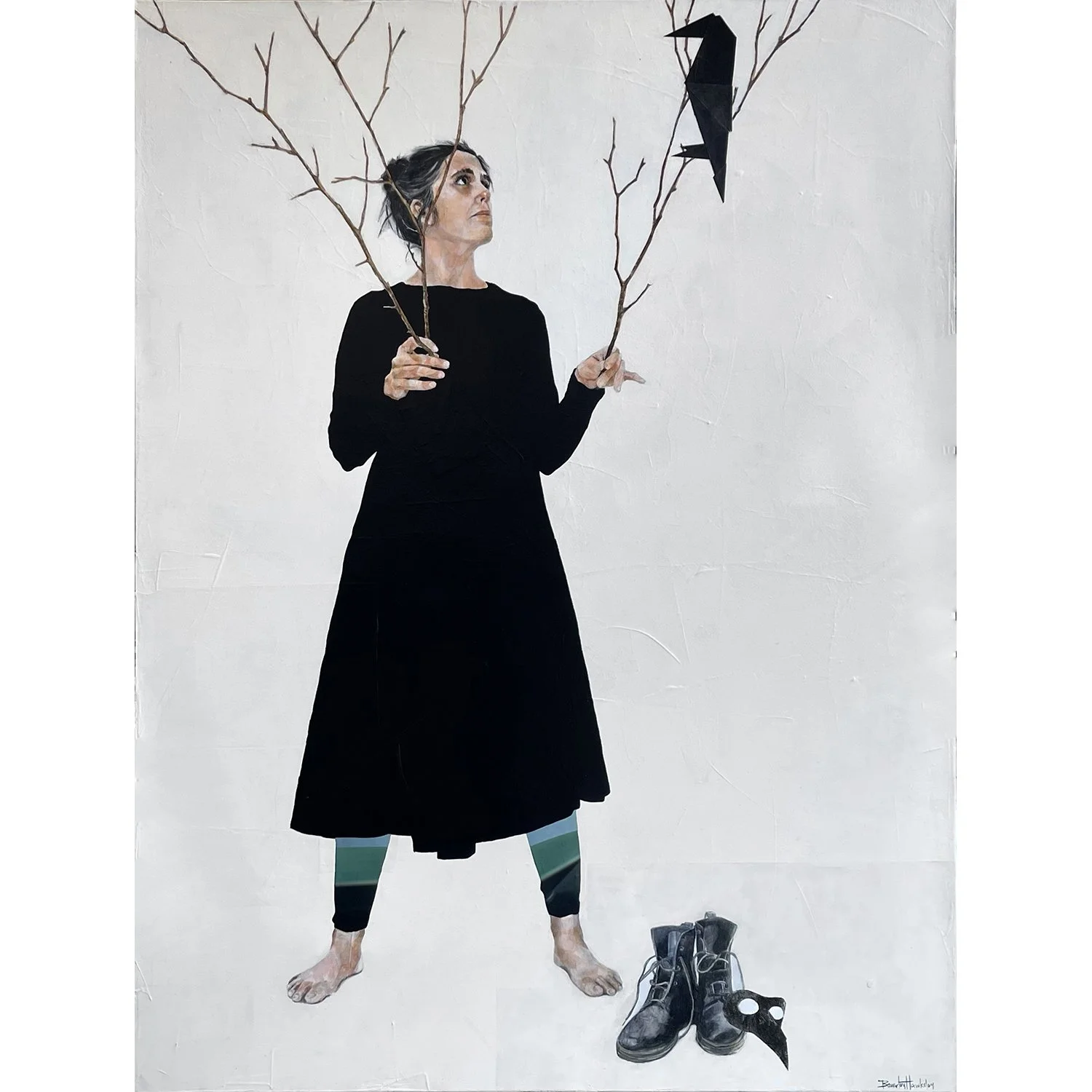 547-039 | Beverley Hawksley, "Landed”, mixed media on canvas, 40"x30". SOLD