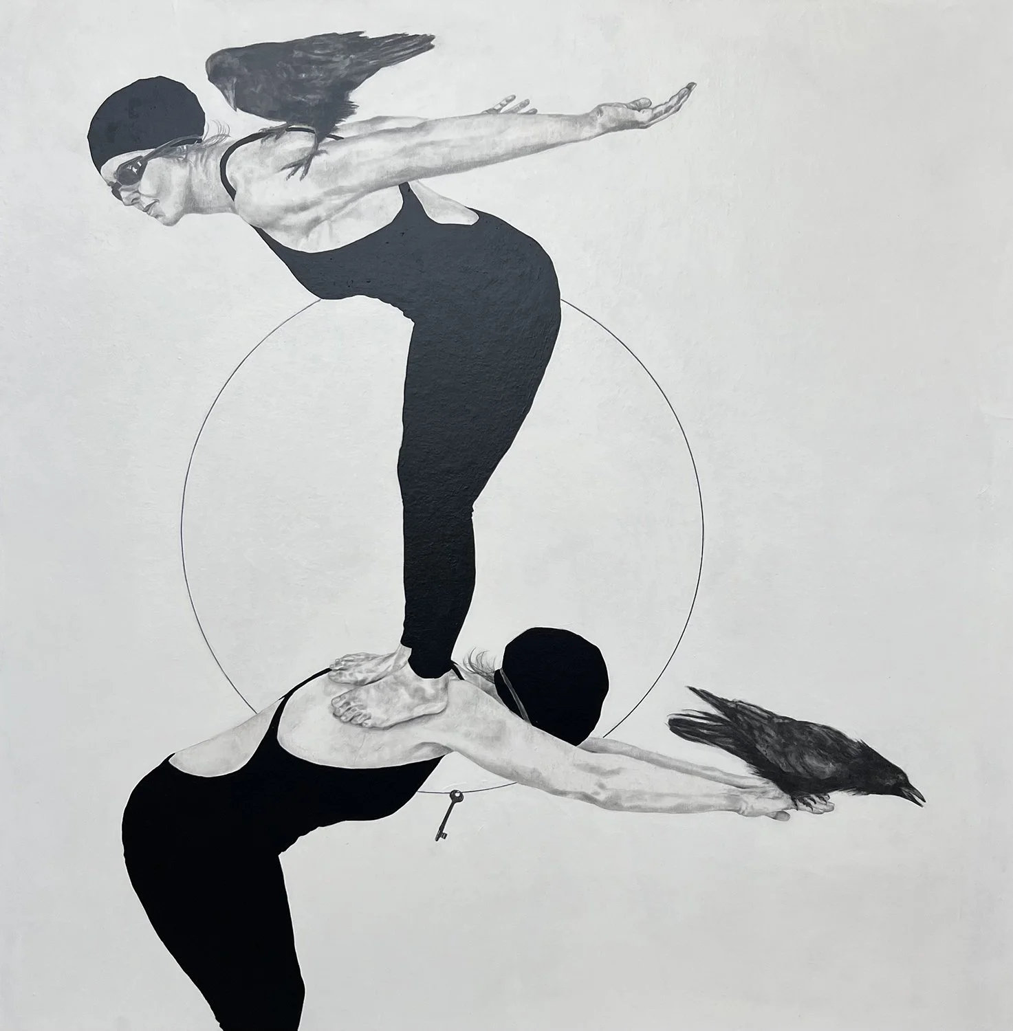 547-113 | Beverley Hawksley, Poised, mixed media on canvas, 12”x12.” SOLD.