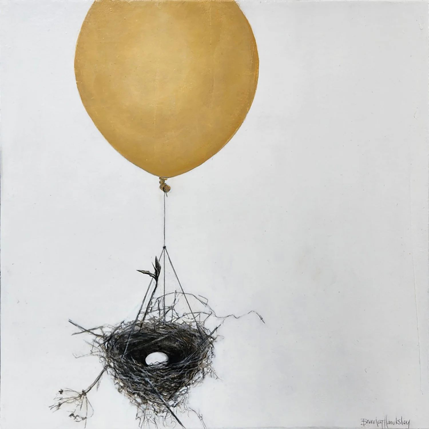 547-081 | Beverley Hawksley, Soft Landing, mixed media on canvas, 16”x16.” SOLD