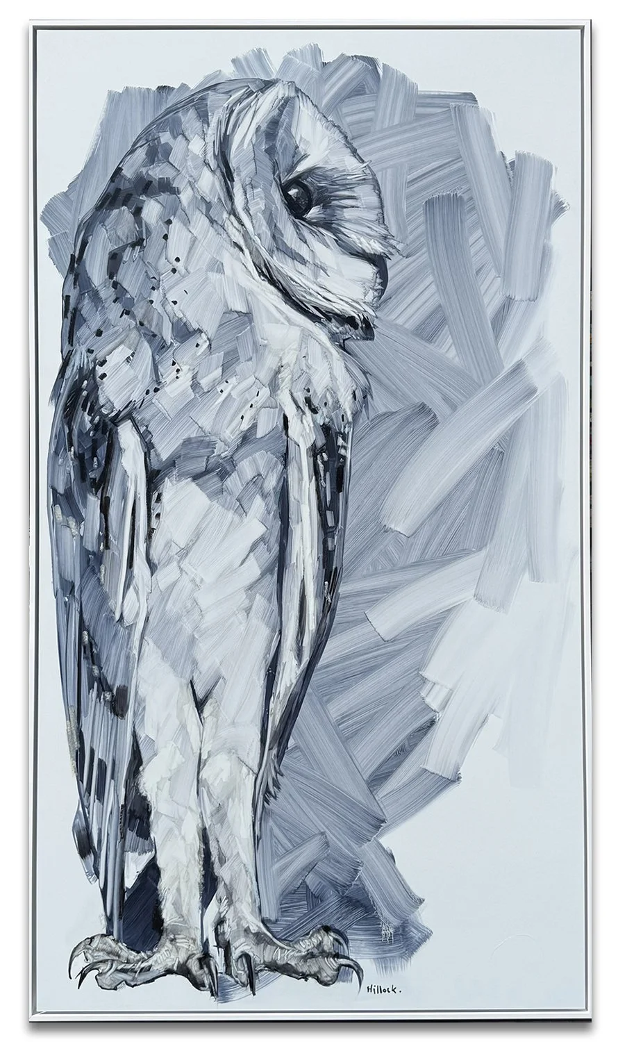 Hillock’s special technique of using oil paint on plastic polymer sheets is an exacting and precise art. Working wet into wet Sarah must complete the painting before the oil dries. The depth of the paint only allows a 10–16-hour window where the paint is still workable. To prepare she plans out the painting in charcoal and ink before attempting the final piece. Her process is fast and loose and produces a composition that combines the elements of precision, planning, energy, and movement.
