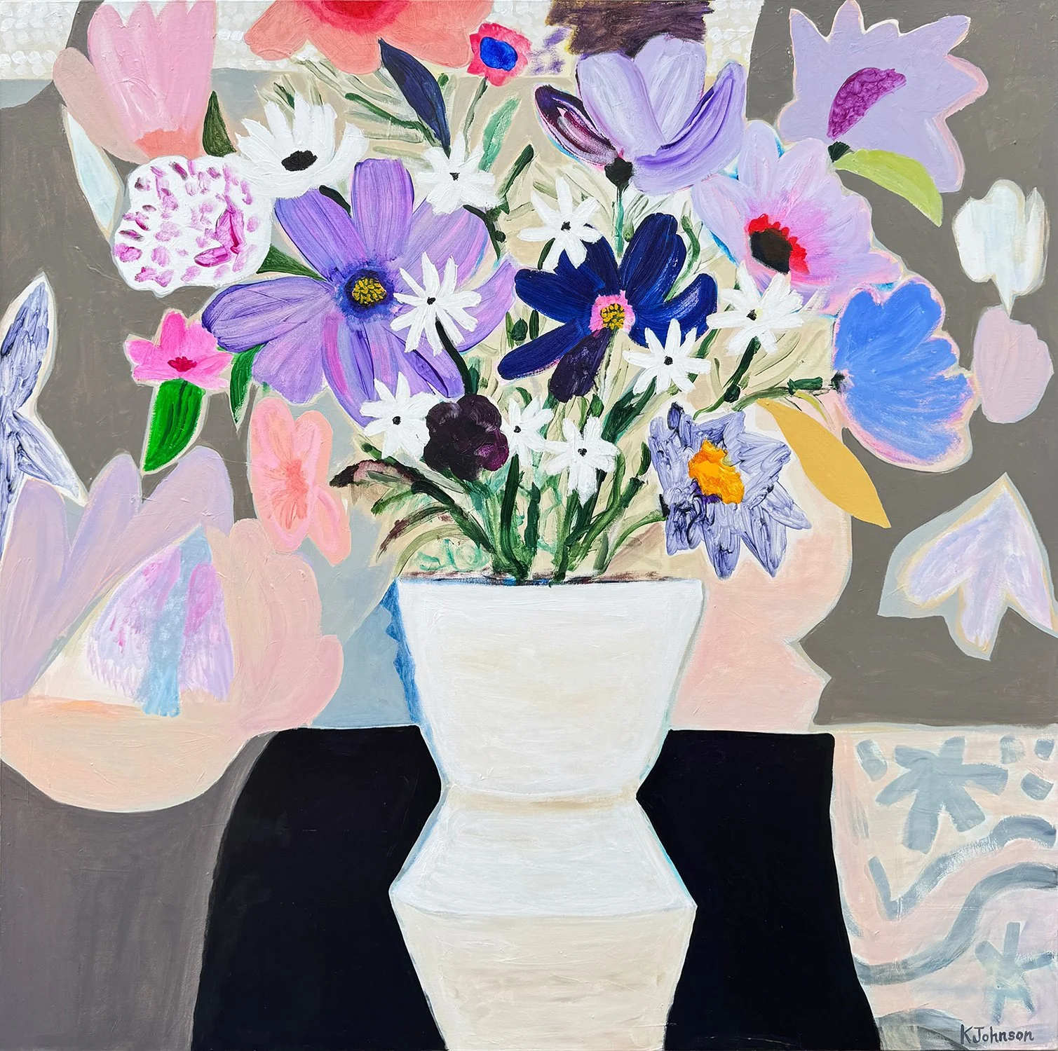 541-108 | Kaitlin Johnson, Zinnias Under Twilight, acrylic on canvas, 48”x48”. SOLD