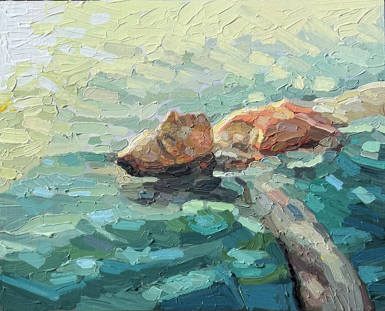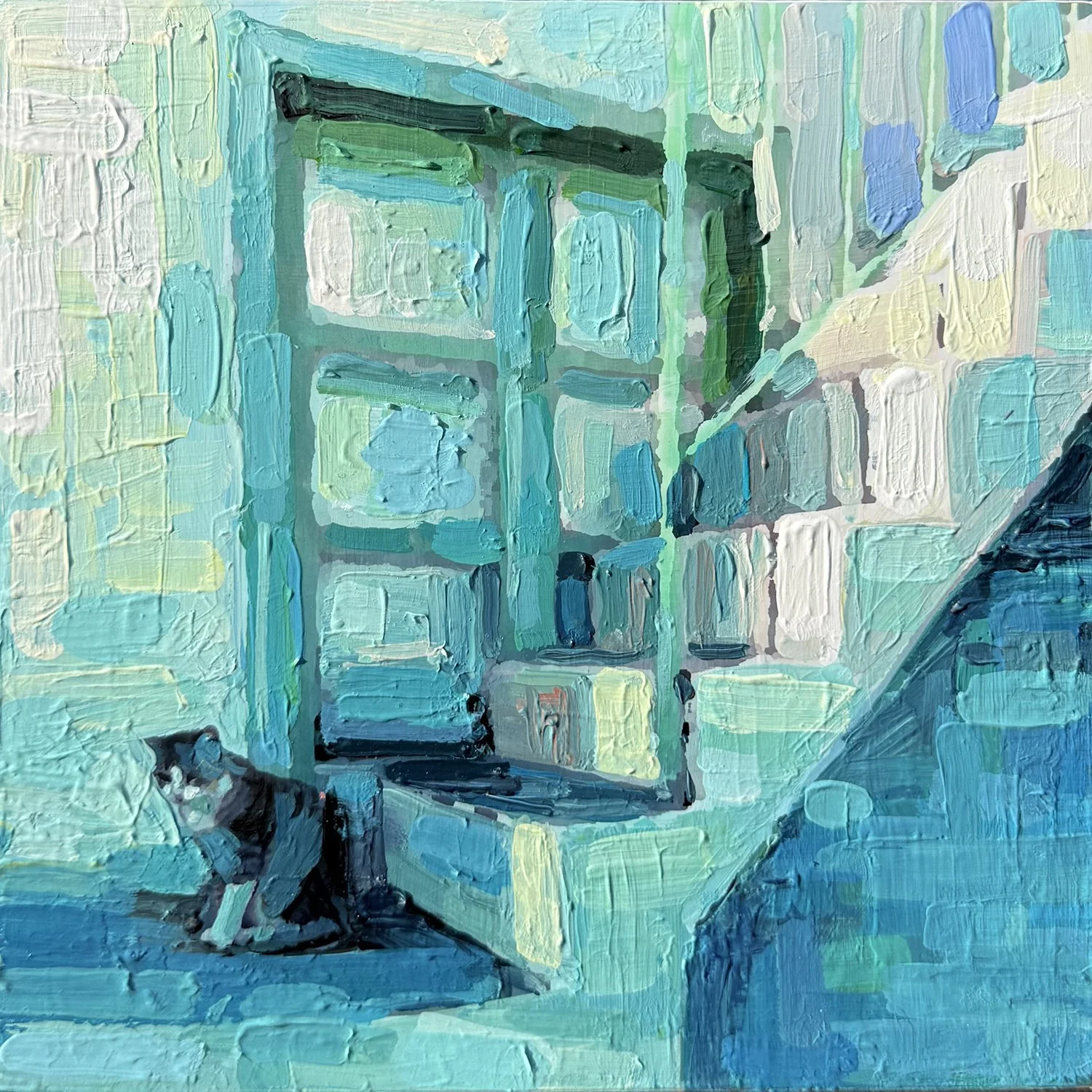 Through her art, Caitlyn seeks to transport the audience beyond the everyday, offering glimpses of imagined landscapes and intimate moments rendered with a tactile, layered sensibility.
