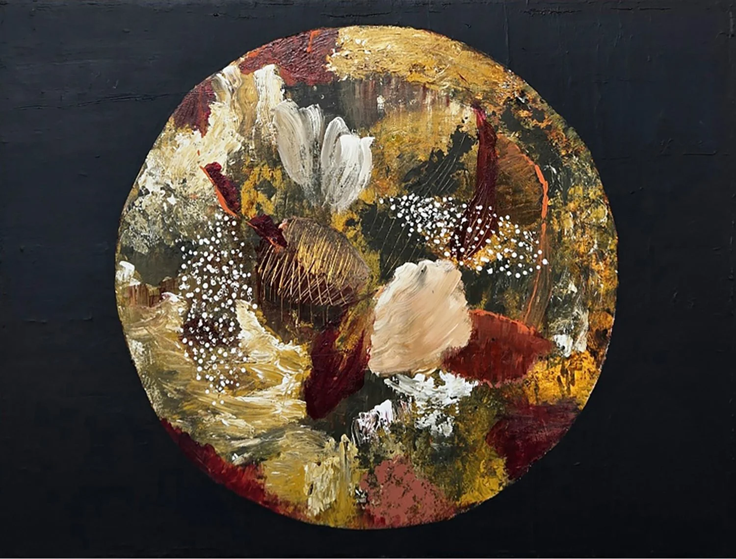 522-121 | Linelle LeMoine, Pond Blooms on a Fall Night, mixed media on panel, 48”x60”. SOLD