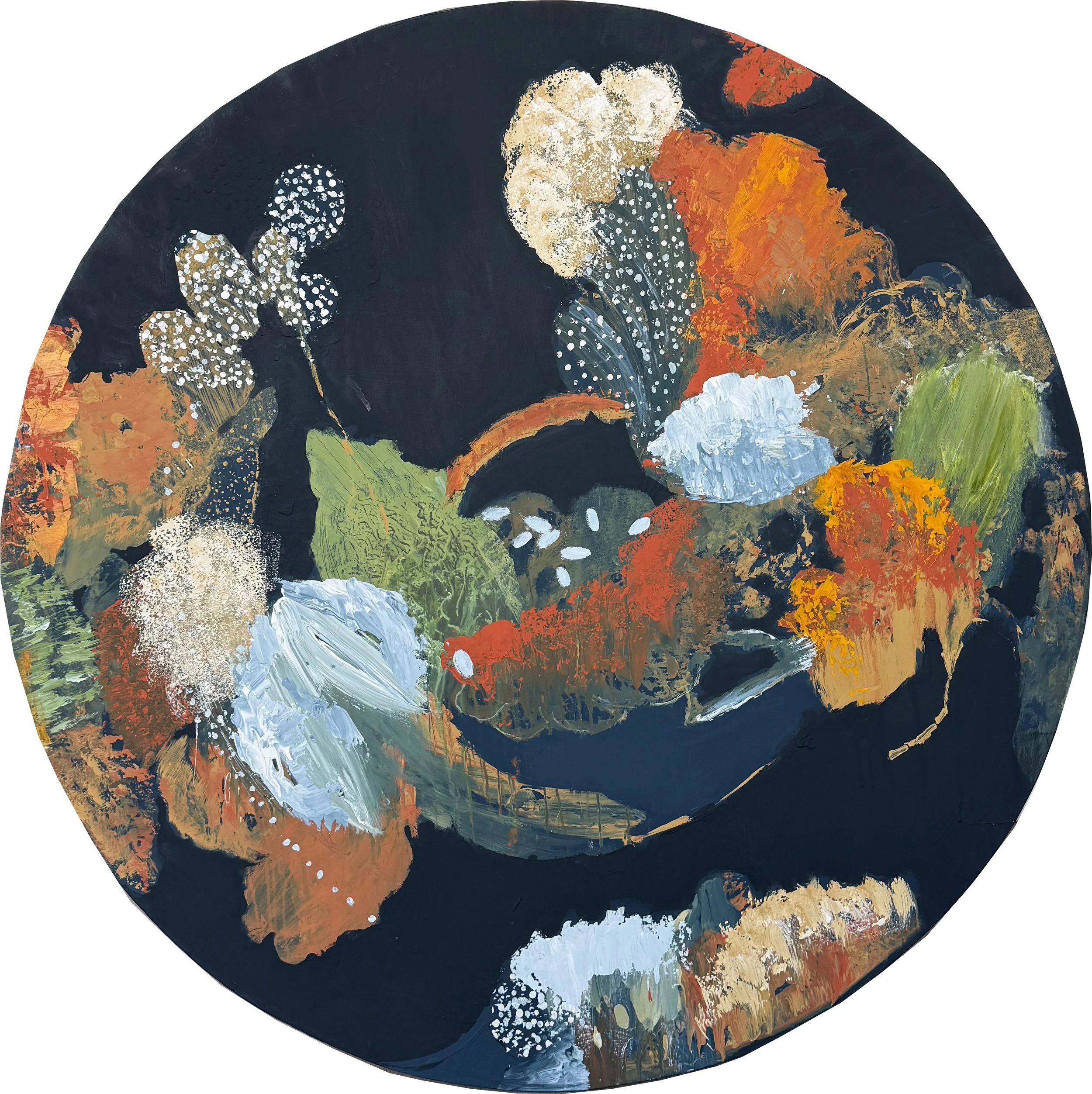 522-138 | Linelle LeMoine, Persephone and Her Spring Blooms #3, mixed media on panel, 40”x40”. SOLD