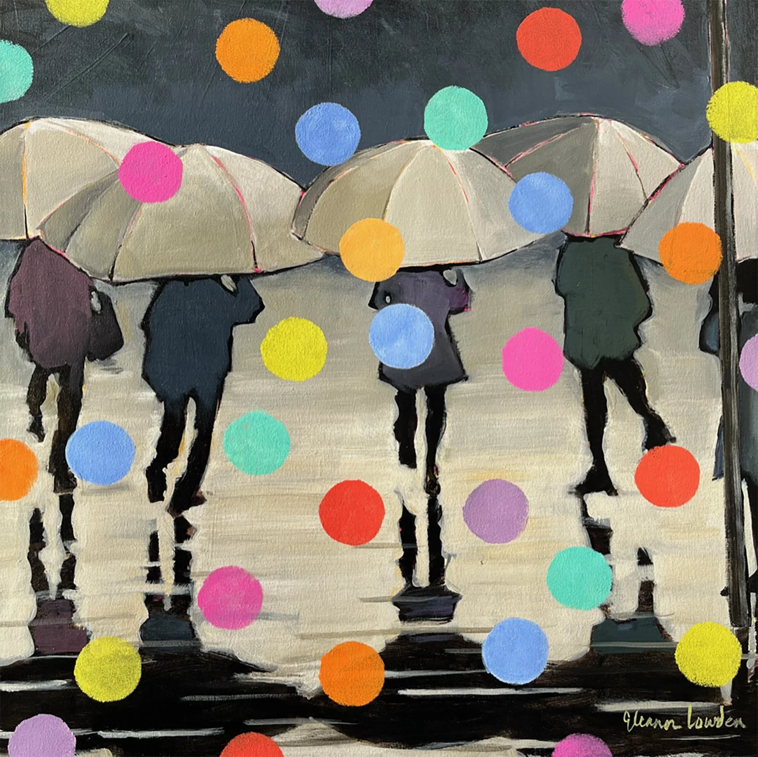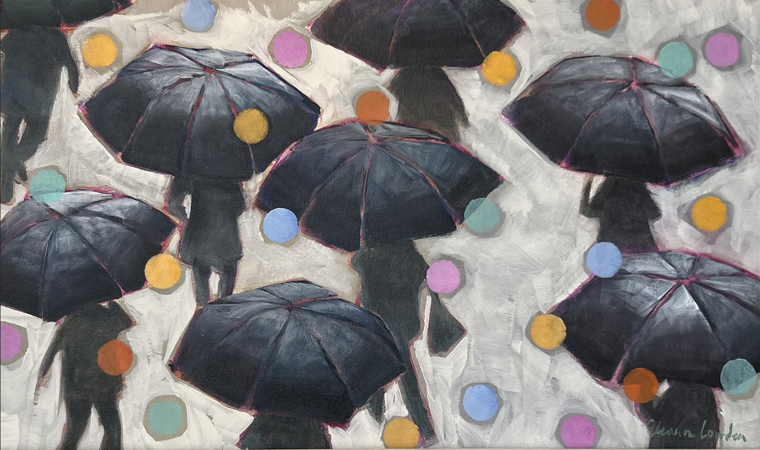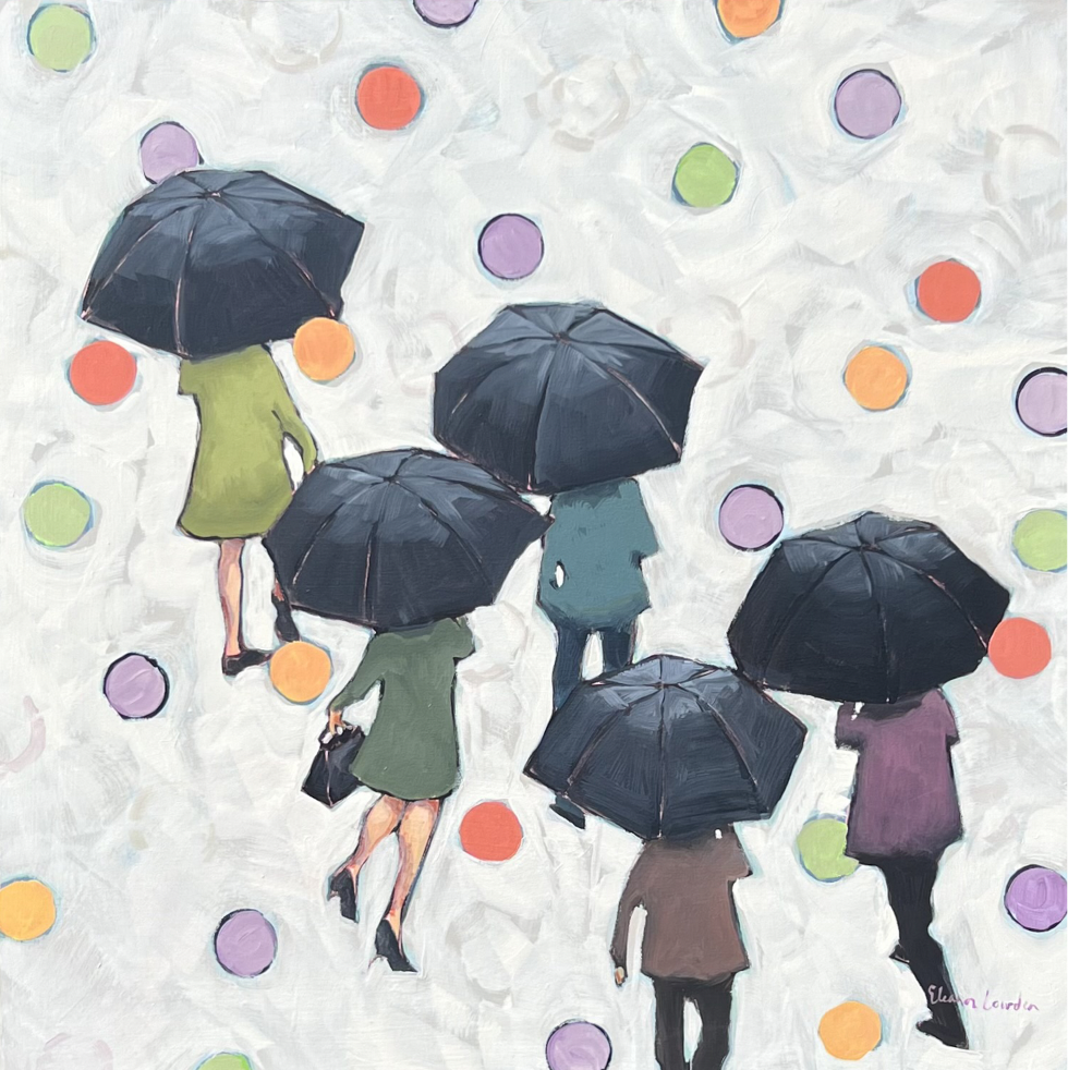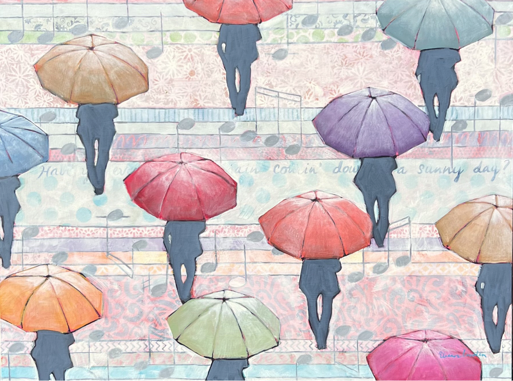 227-153 | Eleanor Lowden, Make the Most of a Rainy Day, acrylic on canvas, 36”x24”. SOLD
