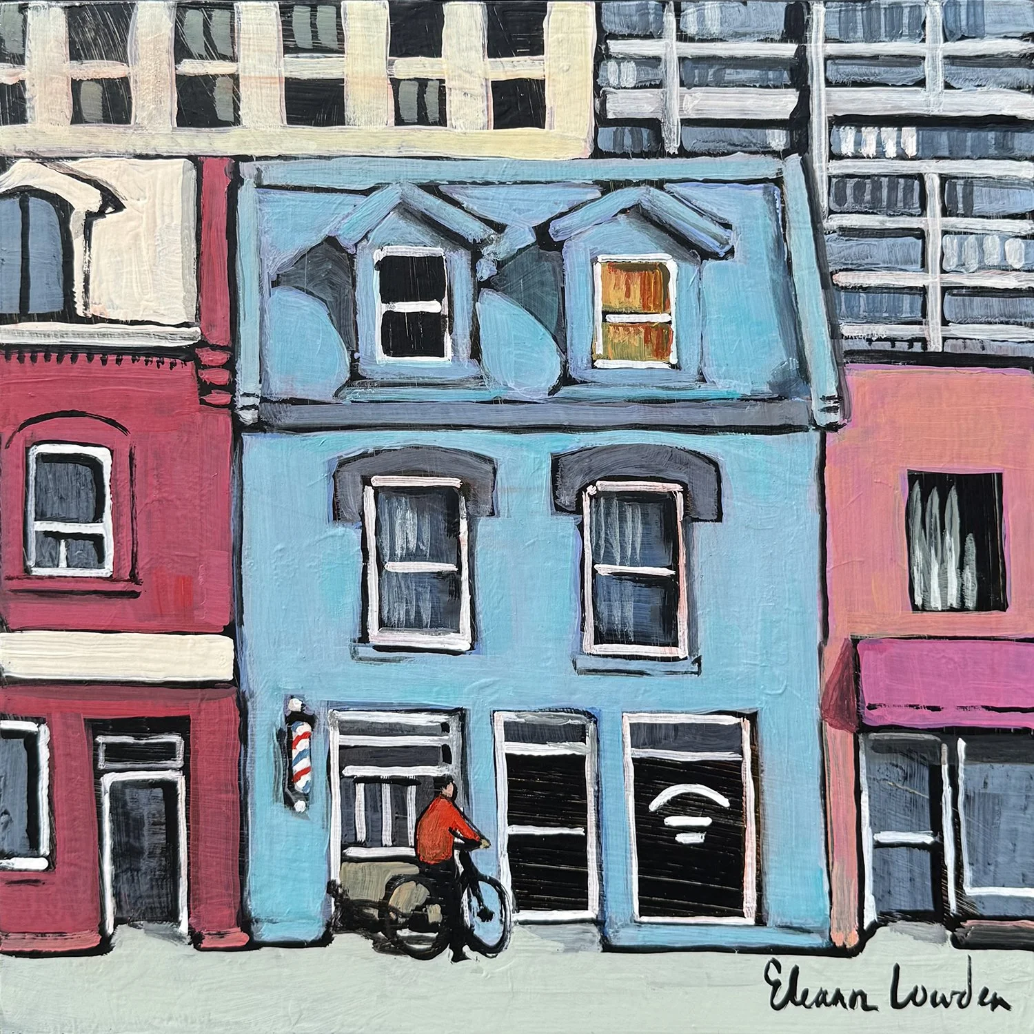 227-169 | Eleanor Lowden, Barber Shop, acrylic on panel, 12”x12”. SOLD
