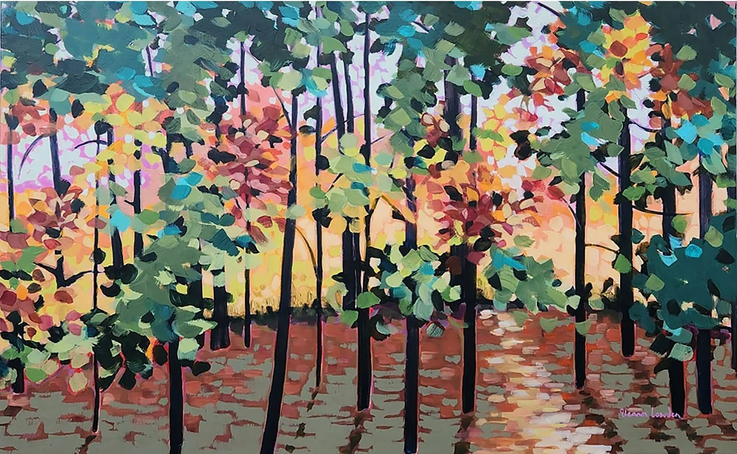 227-161 | Eleanor Lowden, Showering Joy, acrylic on canvas, 30”x40” SOLD