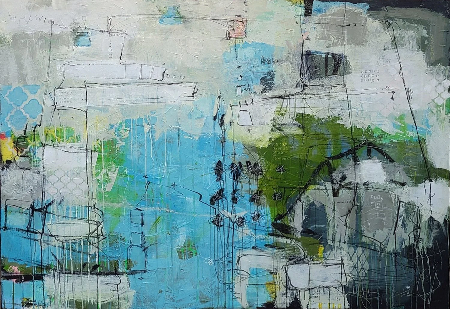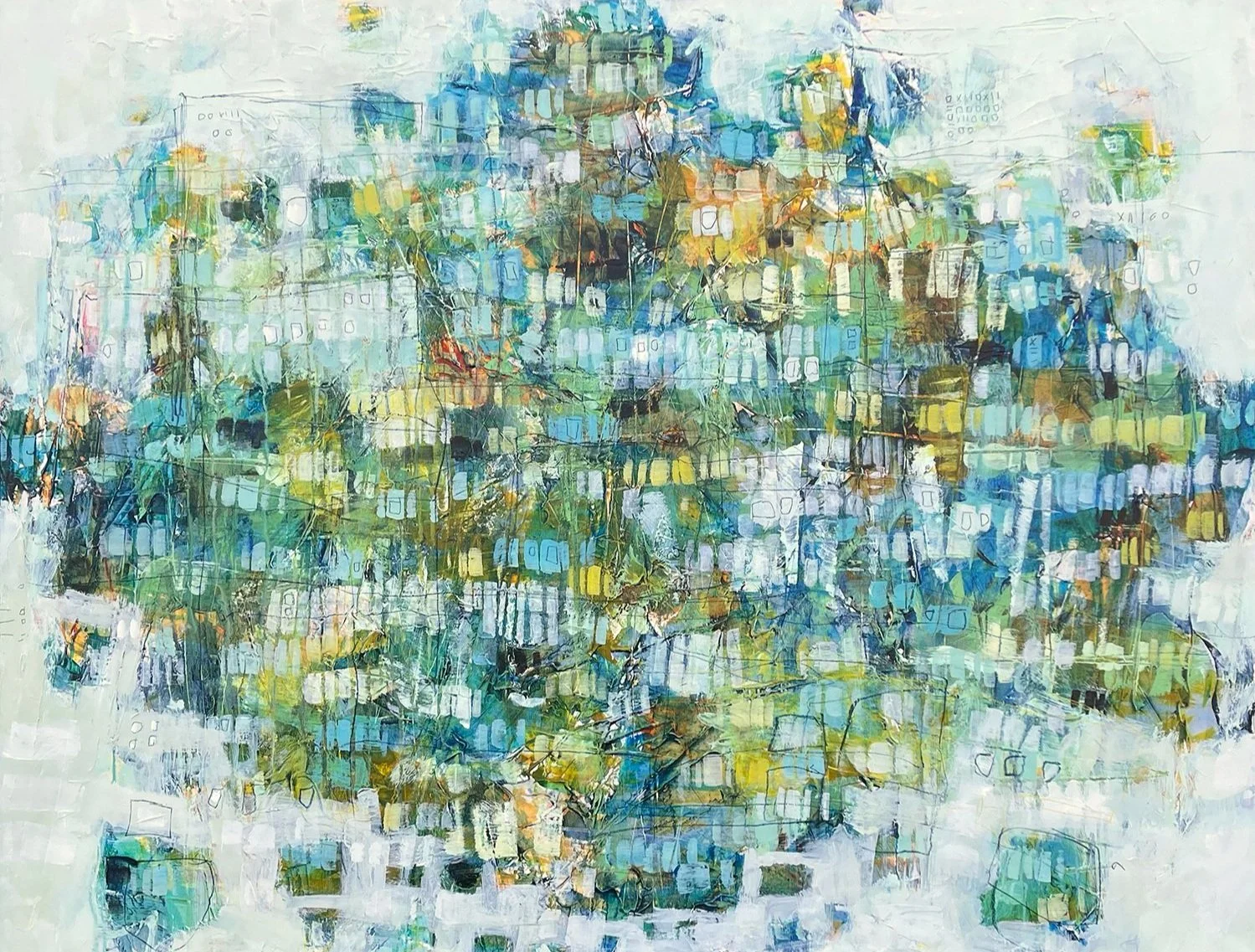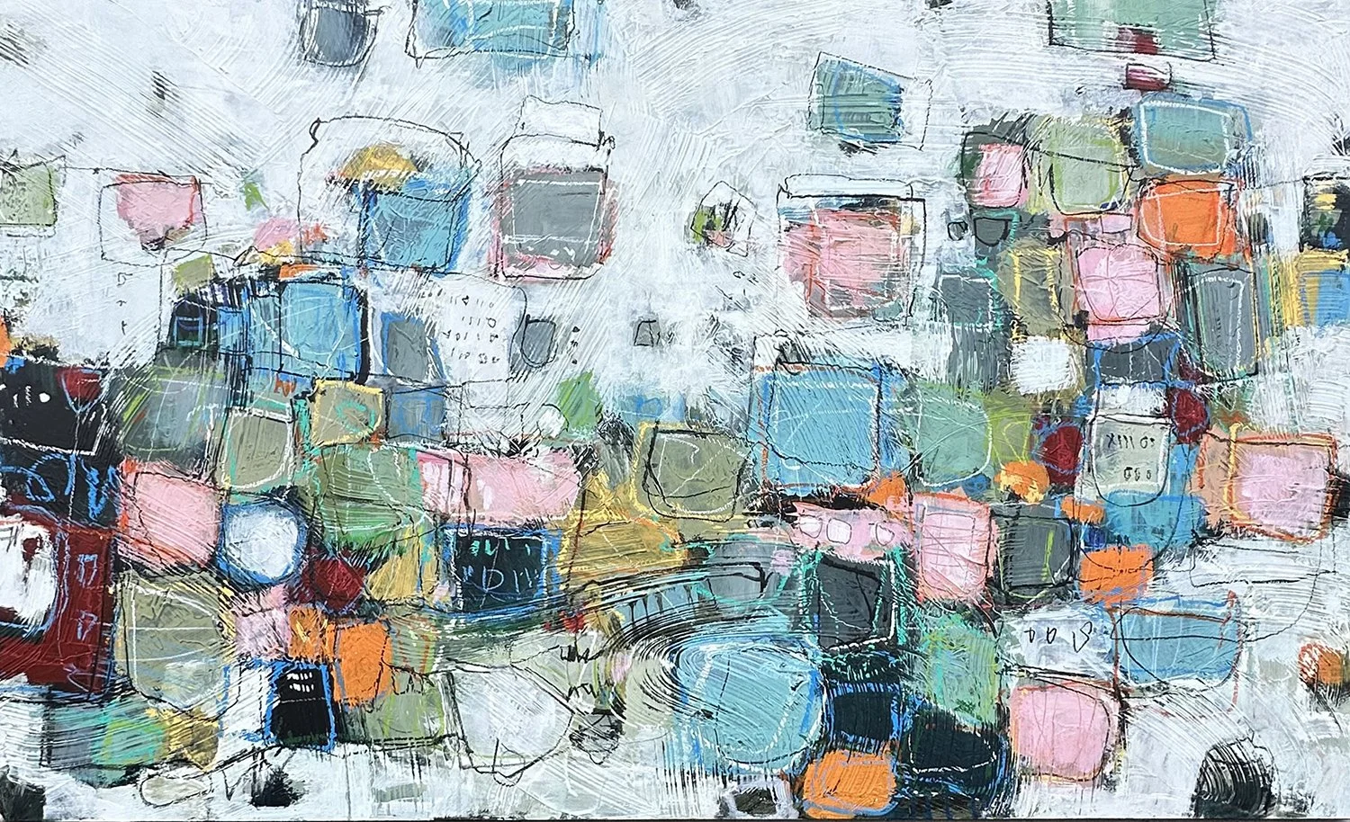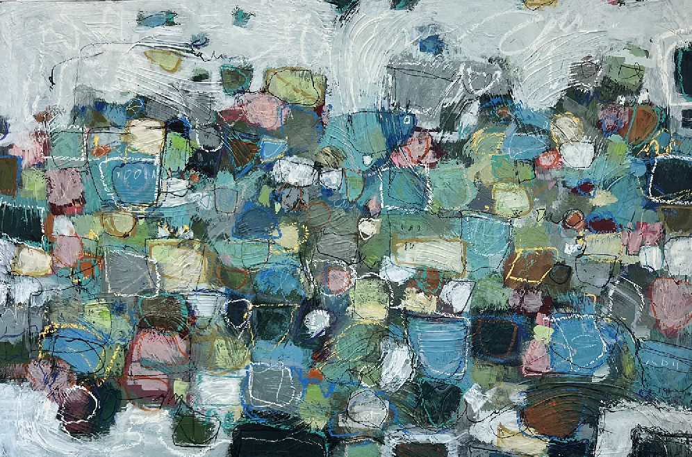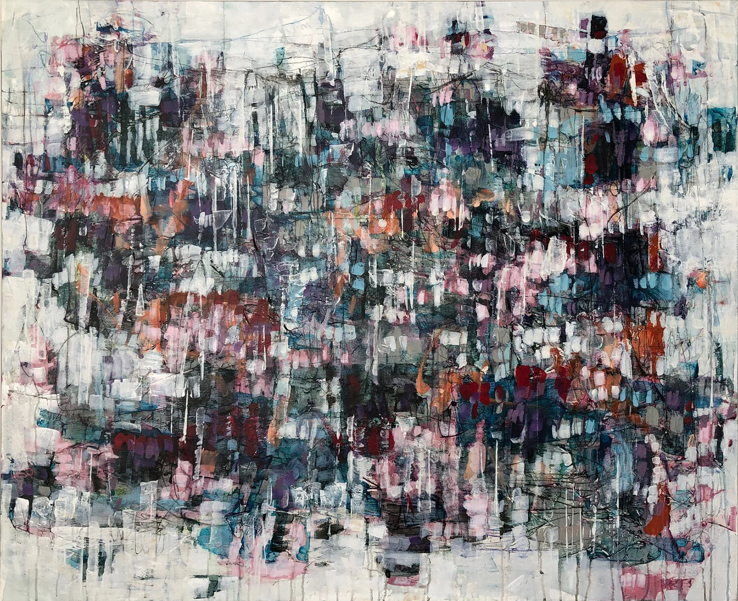 554-073 | Lori Mirabelli, Here It Comes, mixed media on canvas, 40"x60.” SOLD