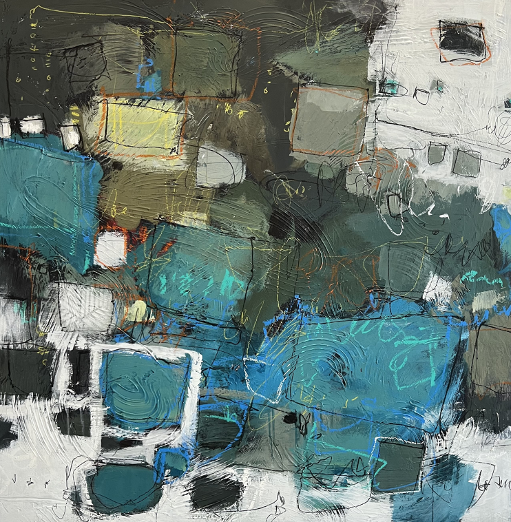 554-066 | Lori Mirabelli, Falling In…, mixed media on canvas, 30”x30”. SOLD