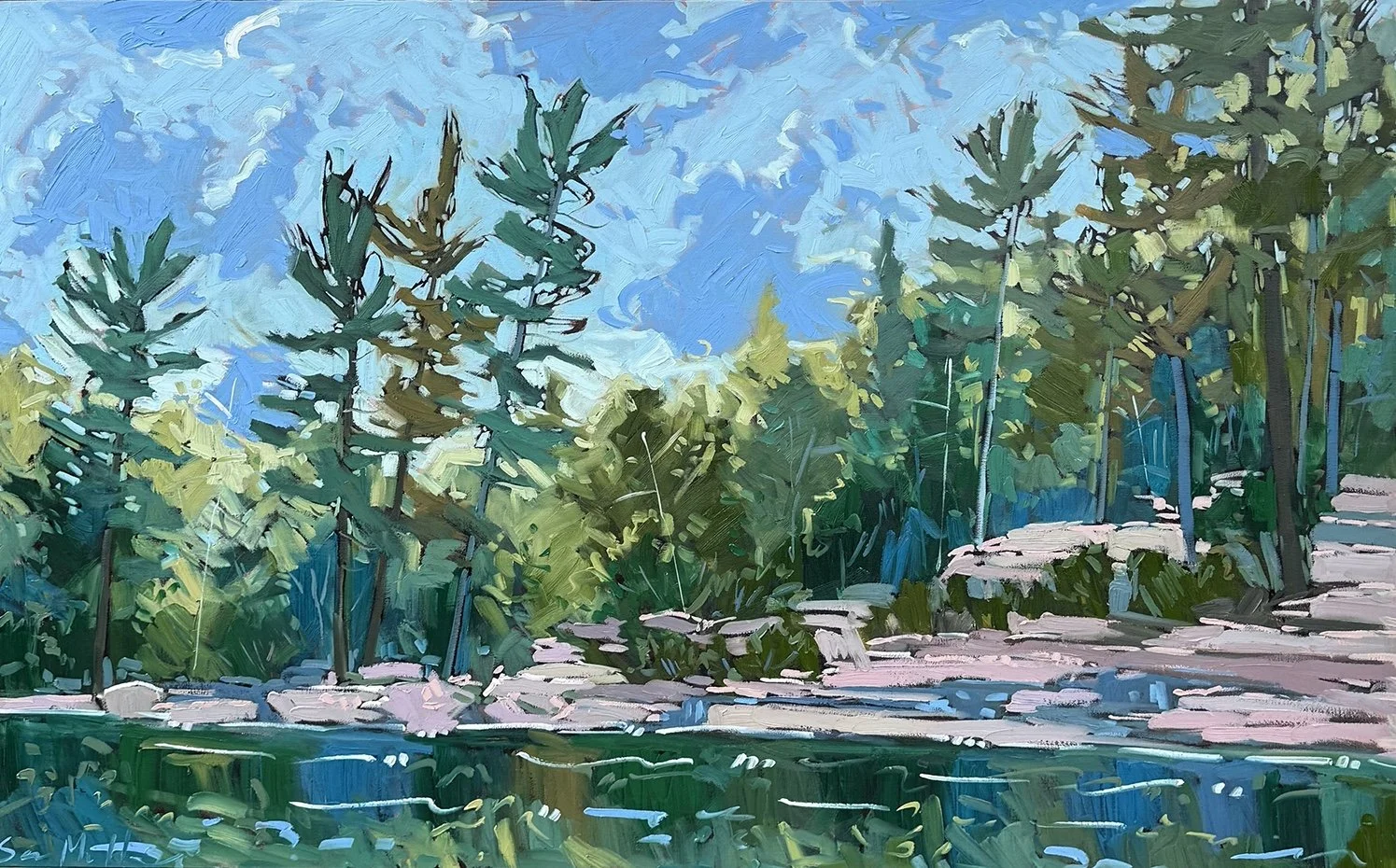 My paintings are an emotional response to what I treasure most in our natural landscapes. Most scenes are untouched by humanity, captured as a nostalgic representation of my experience. I see the world through colour, at times imagined and surreal, as nature feeds my soul and provides endless inspiration. Once I started landscape painting, I began to experience my environment differently. Snow, pavement, and clouds were no longer white or grey, but different hues of blues, purple, and pink. Now I note subtleties in colour variation, intrigued by the tints that shadows display. By being more mindful of my everyday surroundings, I find inspiration all around.
