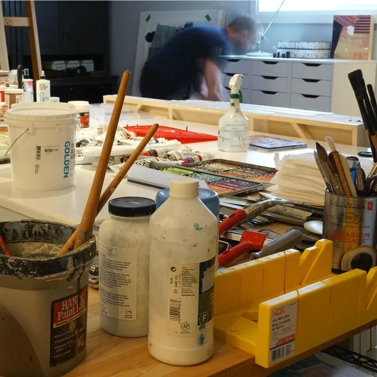 Jacques was born in Montreal in 1961. He started painting at the age of 16 and he was selling paintings within the year. The family moved from Montreal to the Niagara region and Jacques was encouraged to enter his work in juried shows. Jacques was accepted into the Communications and Design department at OCADU to study illustration and eventually switched over to advertising and editorial graphic design programs. Upon graduating with honours, he started a career in publishing. Over the past 33 years, Jacques has worked with clients in Canada's leading publishing companies and won numerous awards. Among many others, Jacques has held the title of Art Director at Canadian House & Home, City & Country Home and Chatelaine. He is currently the Art Director of International Architecture & Design magazine published in association with Sotheby's. Throughout his career in publishing Jacques has kept up his interest in painting, evolving from figurative to non-objective expression.