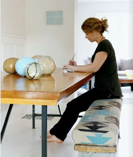 Holly Wheatcroft's kinetic sculptures feature wooden pieces covered in linen and oil that are arranged vertically to spin around a central pole. Reminiscent of a tower or ladder, the concept is that each piece serves as a personal "communication pole" of awareness. Holly currently lives and works in Toronto.